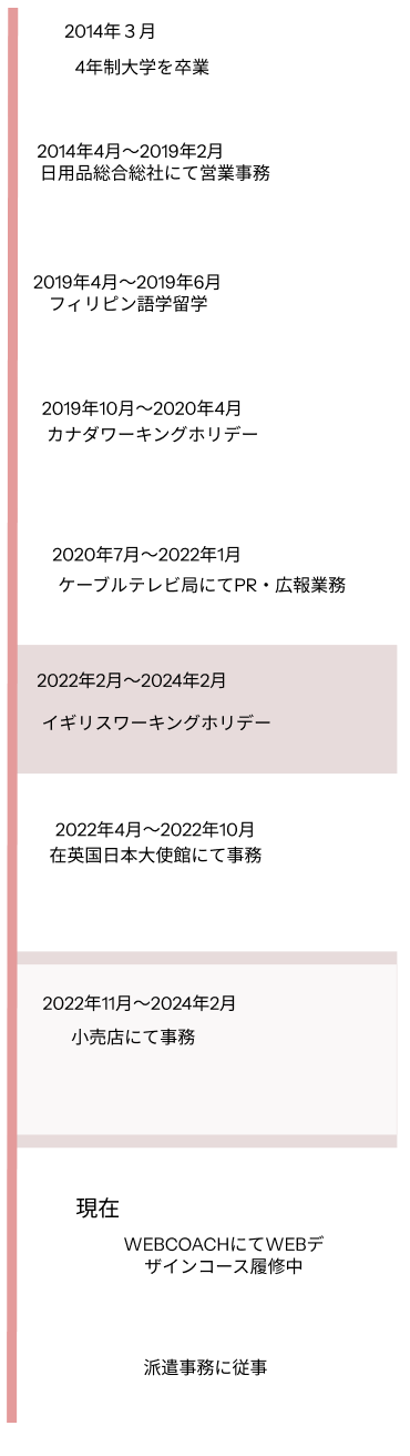 | 2022年11月〜2024年2月 英国、小売店にて事務 |